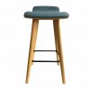 Moderní barová židle s elegantním designem a originálním čalouněním. Dřevo v provedení buk Honey 02 a očalouněné kvalitní ekokůží z kategorie A, vintage 505 middle blue v originální modré barvě. Židle je skvělou volbou do moderně laděných kuchyní a jídelen.